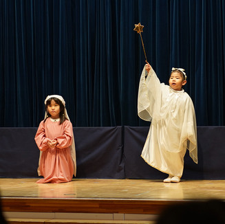 年長さんの、幼稚園最後の聖劇が始まりました。BGMはあらかじめ録音された音源を使うのではなく、教諭が場面に合わせてピアノを弾きます。優しい音色を背景に、自分に与えられた役割に一生懸命に取り組み、全うしようとする姿に、みんながとっても素敵なお兄さん、お姉さんに成長したことが感じられ、嬉しさだけではなく、感動が胸に満ちあふれます。